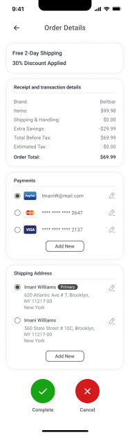 A clean and intuitive user interface designed to make checkout convenient with effortless access to payment and shipping information.